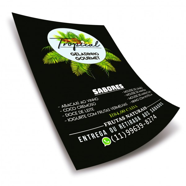 Aqui você encontra cartazes em diversos tipos e gramaturas de papéis e pode também aplicar opções distintas de coberturas para dar ainda mais visibilidade à mensagem que se deseja transmitir. Há modelos de tamanhos variados e a arte gráfica é totalmente personalizável.